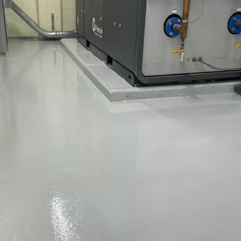 A properly specified epoxy or resinous flooring system in mechanical rooms offers a seamless, non‐porous surface that resists spills and leaks, supports heavy equipment loads and vibration, improves safety by offering slip resistance and shock absorption, and reduces maintenance costs.